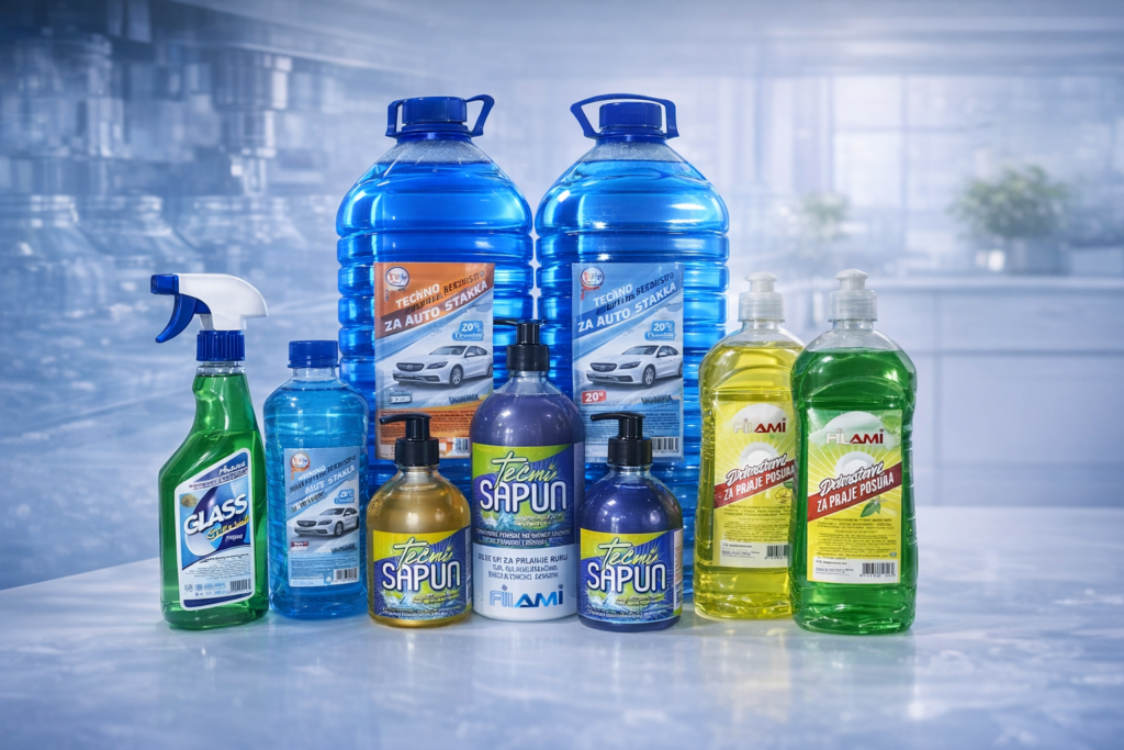FILAMI je domaći proizvođač kućne hemije sa sedištem u Žiči, nadomak Kraljeva. Već šest godina gradimo poslovanje zasnovano na jasnim principima: pouzdana formulacija, stabilan kvalitet i korektan odnos prema kupcima i partnerima.